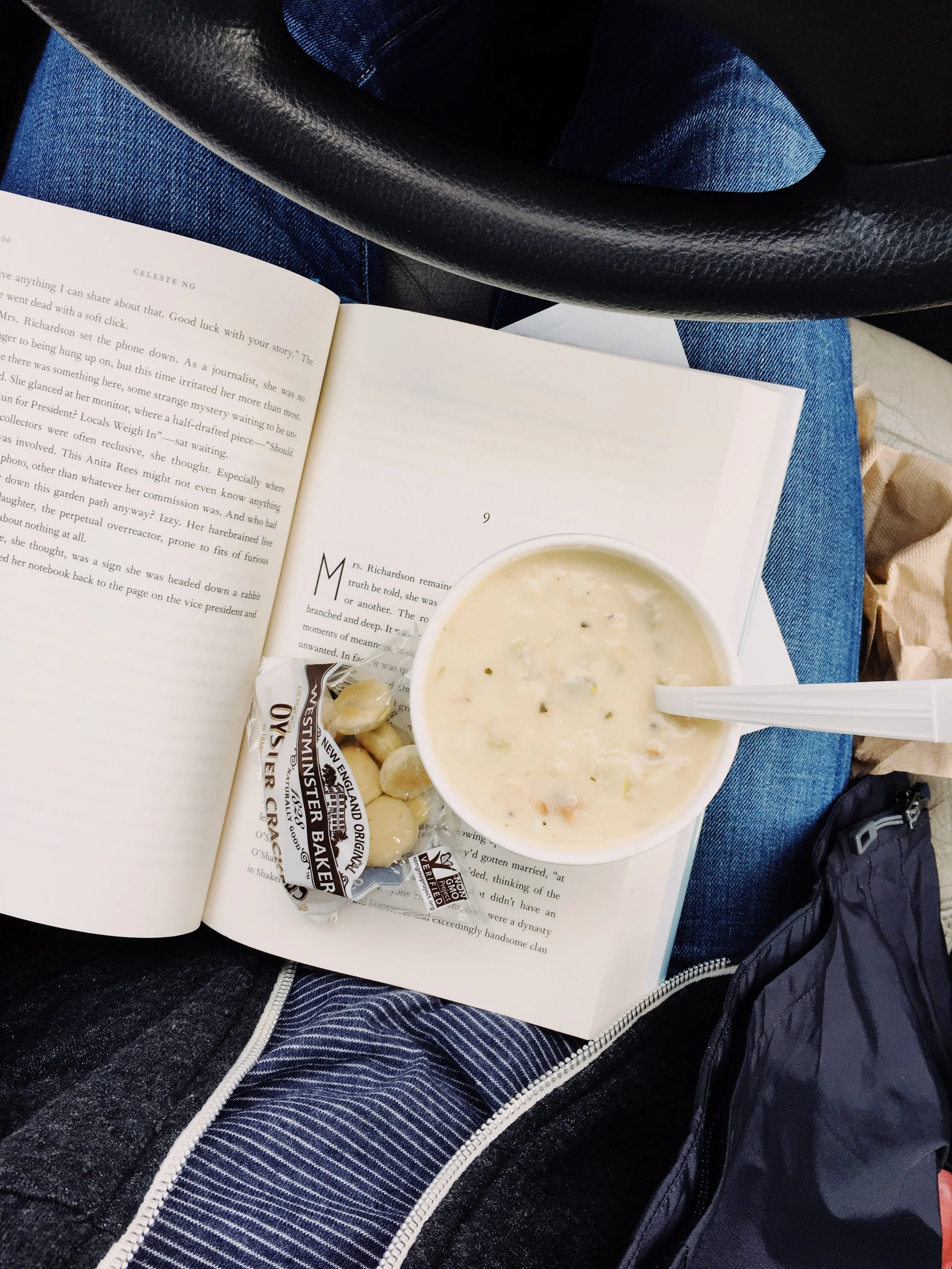 Thankful for Whole Foods clam chowder (which, yes, I ate in my car, in the parking lot, while reading a book 🤷♀️).